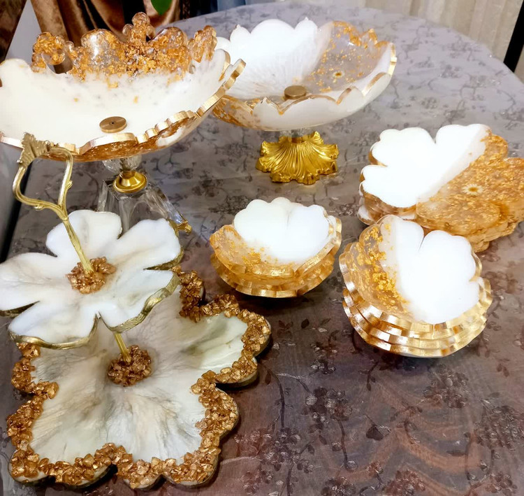 + موارد بیشتراجرای ظروف رزینی طرح گل بابونه و ورق طلا ✅️
